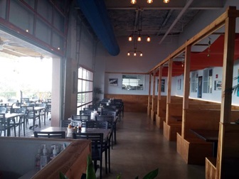 mostly empty except for a sparsely populated bar. So my lunch companion