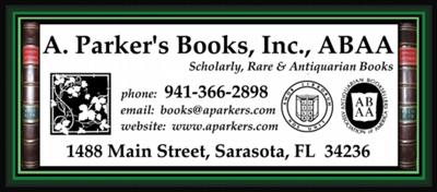 A. Parker’s Books, Inc., ABAA, is a Sarasota-based antiquarian bookstore with associate locations in New Orleans and Boston, specializing in scholarly, rare and antiquarian books, sets and fine bindings, as well as library design and collection development services. The Sarasota Bookstore will be exhibiting at the 31st Annual Baltimore Summer Antiques Show in Baltimore, Maryland during the last week of August.