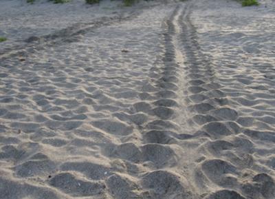 You may be surprised to see very tiny prints rushing from the nests toward the gurgling surf. With luck you will see a miniature version of the mother, struggling to make its first sea voyage.