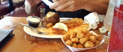 My lunch companion had Stuffed Flounder ($17) with a baked potato and okra, included in the price. It looked delicious with a nice color to it from the seasoning and broiling. No complaints from my lunch mate!